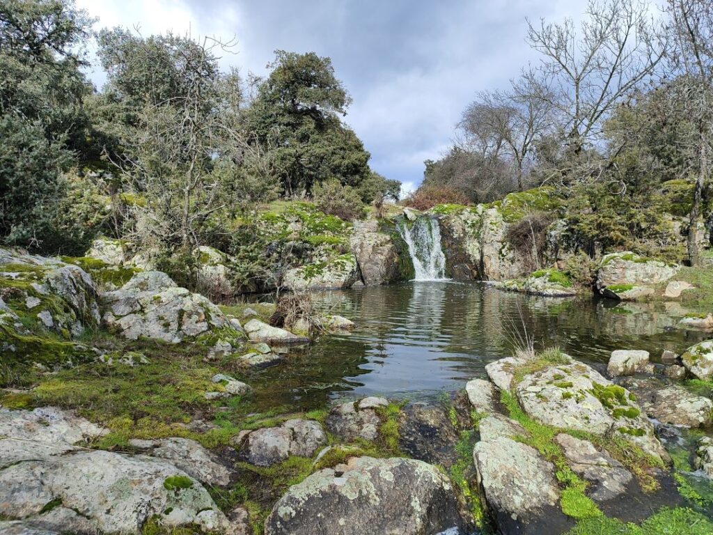 Caminata sencilla, de nivel bajo por la falda del cerro de San Pedro que combina cascadas, ríos, arroyos, dehesas con esplendidas vistas y enormes ejemplares de encina y enebro. Y salpicado de arces de Montpellier.