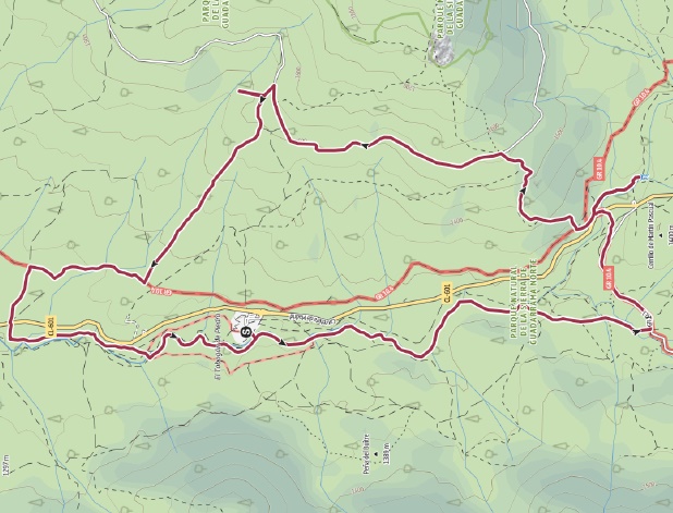 El que sea una ruta circular nos permite elegir el punto de inicio, vamos a hacer la descripción empezando en el aparcamiento del área recreativa «los Asientos» aunque bien se podría empezar en la Boca del Asno o incluso en el puente de la Cantina.