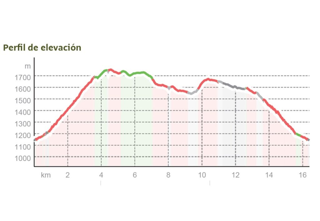 Puntos de dificultad: El primer cuarto del recorrido es el que agrupa casi todo el desnivel del recorrido y aunque no hay pendientes fuertes hay que tenerlo en cuenta. El otro aspecto a considerar es la longitud total.