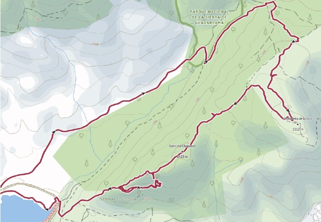 Valores naturales y paisajísticos de interés: El interés principal son las sabinas y enebros centenarios entre los que destacan los dos ejemplares singulares (un juniperus thurífera y un oxicedro) sin olvidar robles, encinas y algunos fresnos de gran porte. Adicionalmente el recorrido nos regala unas vistas espléndidas tanto del valle medio, como del valle alto del Lozoya y si hay nieve en las grandes cumbres las vistas son inigualables. Desde los miradores de la ruta se puede apreciar también las sierras de Ayllón y Rincón.